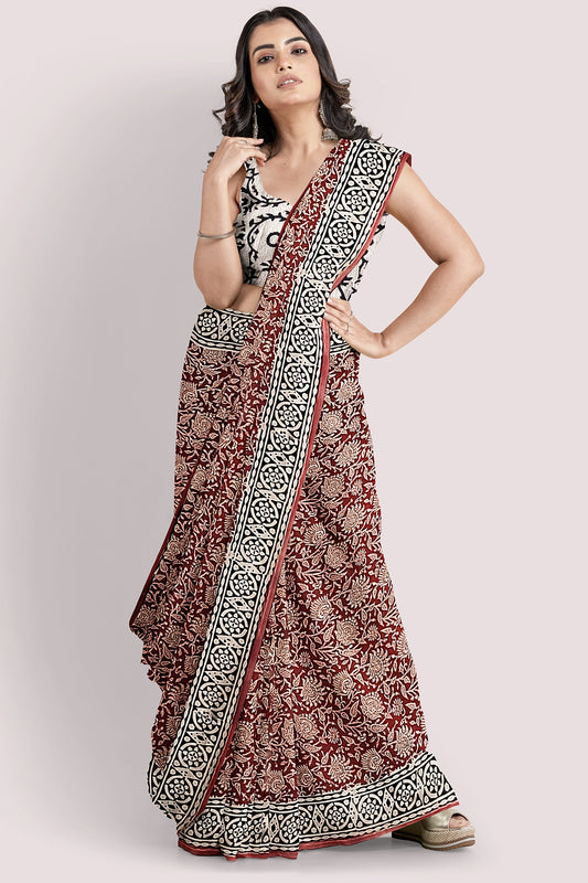 MEDHASVI Block Printed Mul Cotton Saree