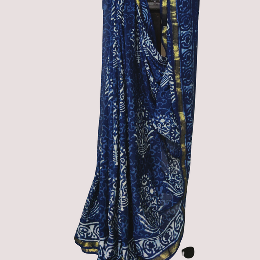 GREEN FORREST Block Printed Pure Cotton Kota Doria Saree