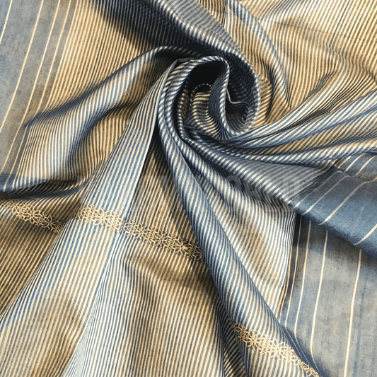 Rehwa Talc Brown Silk Cotton Maheshwari Handloom Saree
