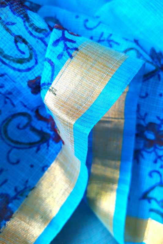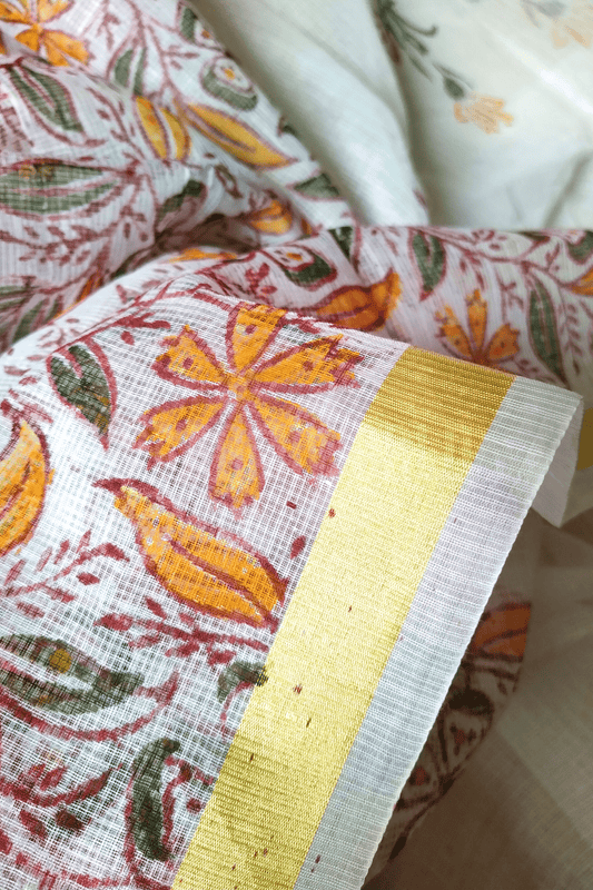 PRATYUSHA Cotton Kota Doria Blockprint Saree
