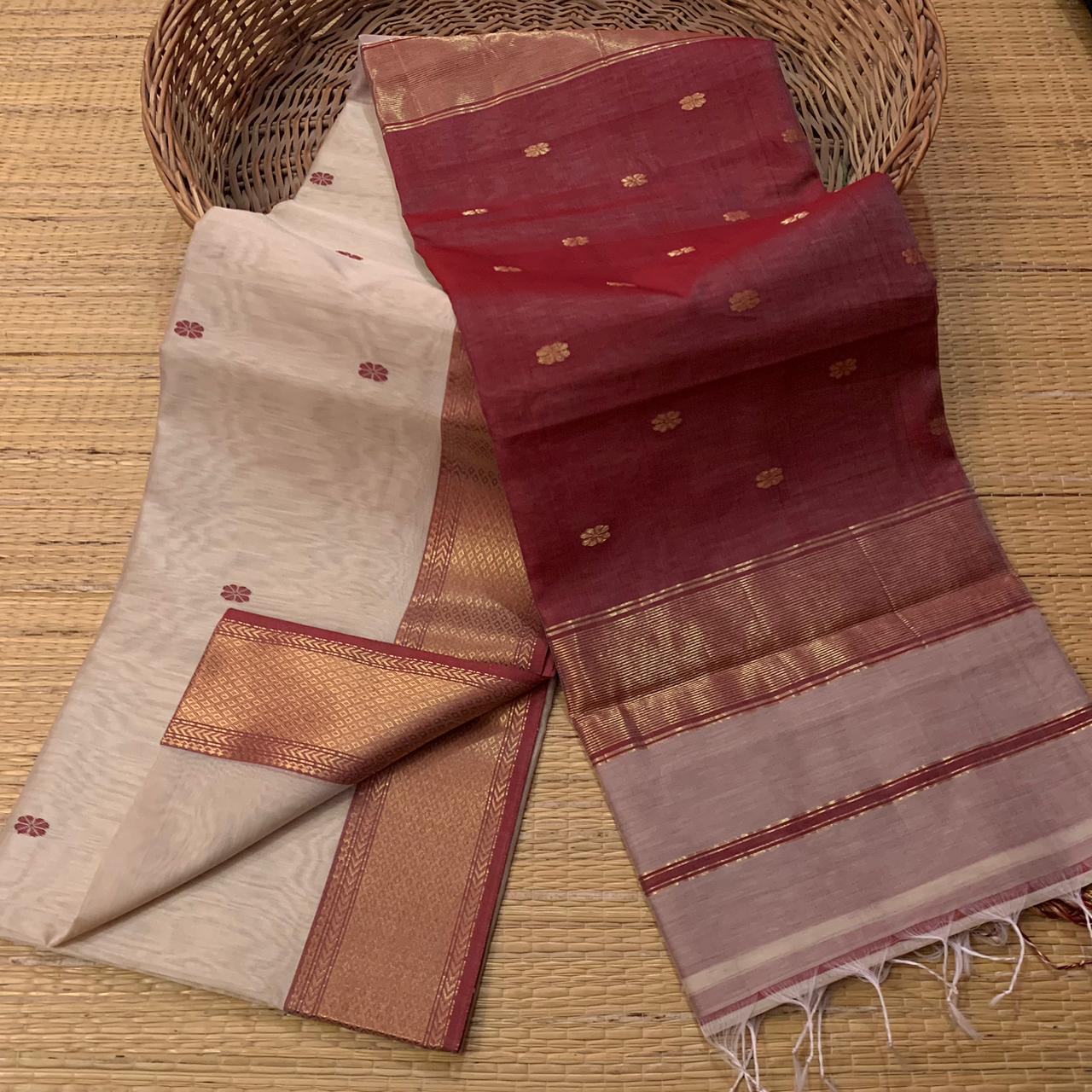 The saucy body of the saree is finished off with a love and efforts of ladies who put a lot of efforts into weaving it, making it a perfect choice for your formal awa casual attire.
